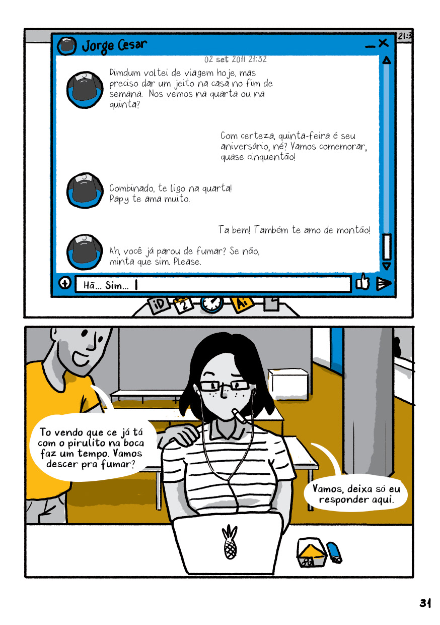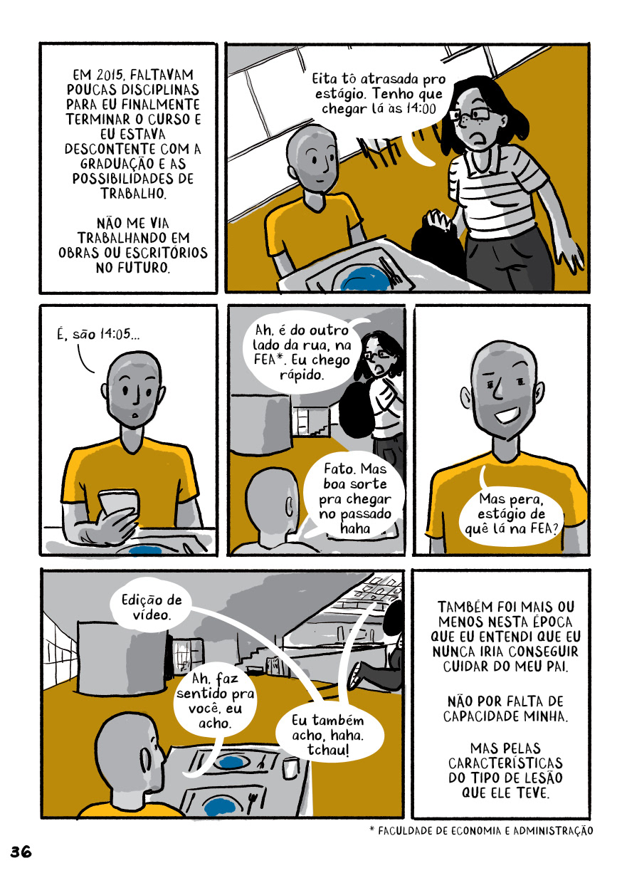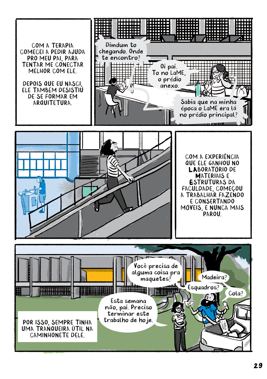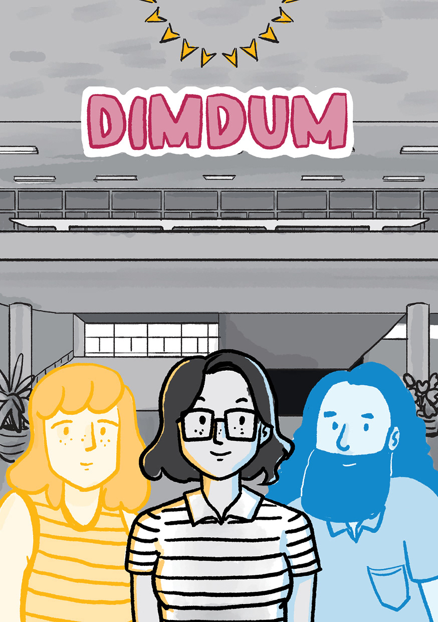 DimDum é uma HQ autobiográfica, sobre perder e se encontrar. Nela, eu conto sobre meu crescimento emocional enquanto estava na faculdade: fiz arquitetura no mesmo prédio que meus pais se conheceram ao cursarem o mesmo curso, e me incumbi de finalizar a graduação por eles, que nunca puderam terminar. Será que estamos destinados a seguir os passos de nosso pais?